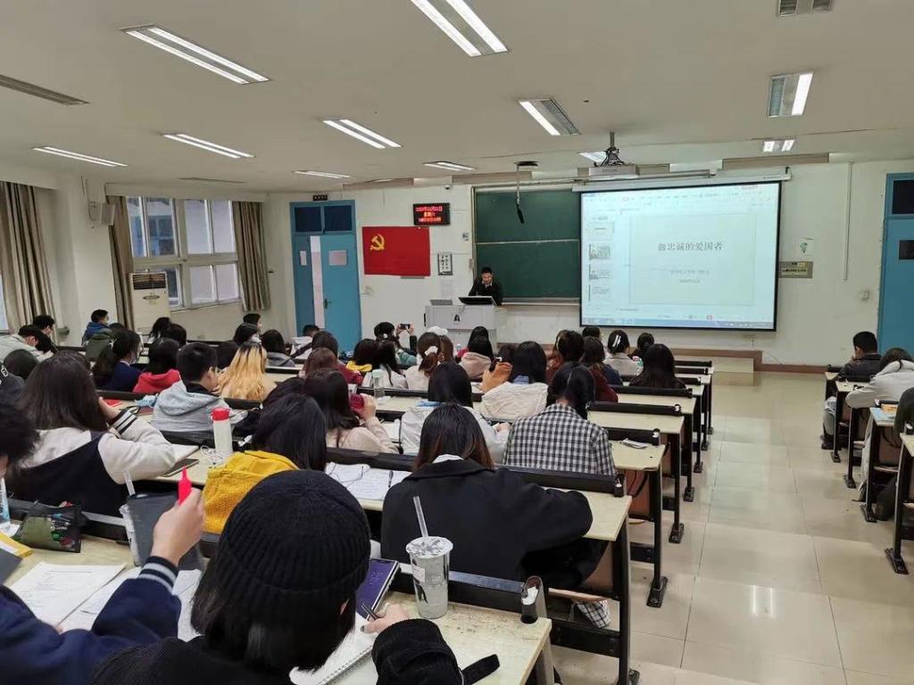 下午2点30分,化学化工学院党委副书记刘怀元以“做忠诚的爱国者”为主题进行了辅导报告。报告会上,他首先解释了爱国和爱国主义的内涵,以及爱国在中华民族的历史中的传承历程,向大家介绍了中国共产党历史上的爱国人士,并阐明了大学生弘扬爱国主义精神的重要性。接着,他还讲解了个人与国家的关系,强调爱国的重要性,并联系时事热点,谈到了香港问题、港珠澳大桥、南海问题等,指出爱国是中国人必备的精神品质。最后,刘怀元副书记着重强调了青年大学生应该如何发扬自己的爱国主义精神,作为发展对象培训班学员,应时刻爱党,拥护国家统一与领土完整,理性爱国,做忠诚的爱国者,立志成才报效祖国。